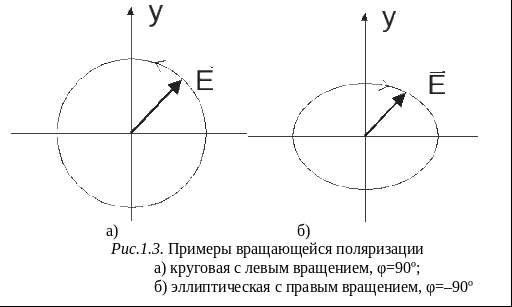 поляризация становится эллиптической - рис.1.3. Круговую и эллиптическую поляризацию называют также вращающейся с левым или с правым вращением.