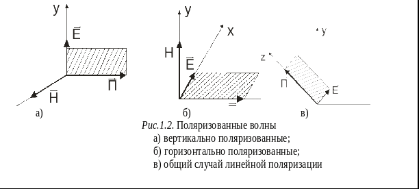 . Если плоскость поляризации остаётся неподвижной по мере распространения волны, то такая поляризация называется линейной. Примеры линейно поляризованных волн представлены на рис.1.2.