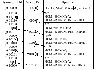 Приклад 3.6. Помножити числа А = 0, 10100 і В = 0, 10011, використовуючи метод 4.