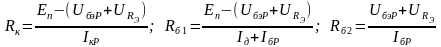 Сопротивление резисторов определяют по формулам, в которых учтено падение постоянного напряжения на эмиттерном резисторе: