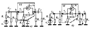 Рисунок 4.10. Эквивалентная схема усилителя ОЭ для низших (а) и высших (б) частот