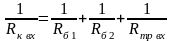 Входное сопротивление каскада определяется параллельным соединением резисторов делителя Rб1, Rб2 и входным сопротивлением транзистора: