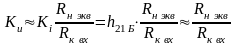 Считая, как и для предыдущих схем, что весь ток выходного электрода (эмиттера) идет в нагрузку, получаем выражение для определения коэффициента усиления по току: