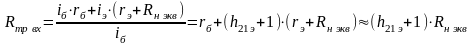 Учитывая большое сопротивление дифференциального резистора обратносмещенного коллекторного перехода для входного сопротивления каскада имеем: