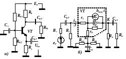 определяют параметры усилителя по переменному току на основе эквивалентной схемы.