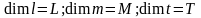 Формализованным отражением качественного различия измеряемых величин является их размерность. Согласно международному стандарту ИСО размерность обозначается символом dim. Размерность основных величин — длины, массы и времени — обозначается соответствующими заглавными буквами: