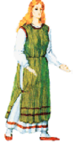Обычным костюмом девушек была холщовая одежда - запона - прямоугольный кусок ткани, сложенный пополам и имевший на сгибе отверстие для головы.
