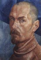 Кузьма Сергеевич Петров – Водкин (1878 – 1939) представитель русского авангарда, родился в г. Хвалынске Саратовской губернии в семье сапожника. Учился недолго в Самаре, Петербурге, с 1897 г. в Московском училище живописи, ваяния и зодчества у А.Е.Архипова и В.А.Серова. Поездка в Италию и северную Африку, учеба в школе Ашбе в Мюнхене и парижских студиях, знакомство с европейским искусством значительно расширило художественные горизонты Петрова – Водкина. Ранний период творчества художника отмечен символистской ориентацией («Сон», 1910) , в которой угадывается влияние Врубеля и Борисова – Мусатова. Петров – Водкин стал известен в России в 1912 г., когда на выставке «Мира искусства» экспонировалась его картина «Купание красного коня», поразившая зрителей дерзкой оригинальностью. Это произведение художника знаменует важный рубеж в его творчестве: символизм его художественного языка находит пластически- образное выражение в традициях иконописной живописи, колорит – в системе трехцветья: красный, синий, желтый. Художник стремится обнаружить в человеке проявление вечных законов мирового устройства, сделать конкретное изображение олицетворением связи космических сил. Отсюда и монументальность стиля, и «сферическая перспектива», т.е. восприятие любого фрагмента с космической точки зрения, и понимание пространства как «одного из главных рассказчиков картины».