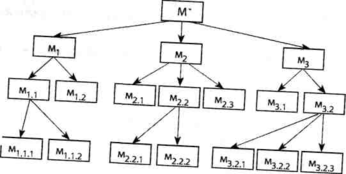 При ієрархічному методі множину послідовно підрозділяють на класифікаційні угрупування, між якими існує підлегла залежність: система класифікацій на основі підлеглості нижчестоящих угрупувань вищестоящим (мал. 1.1).