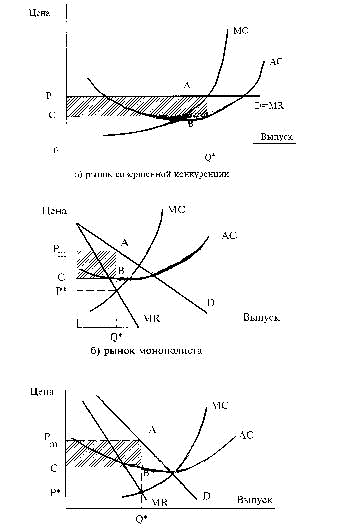 | D - кривая спроса; MC – кривая предельных издержек; АС - кривая средних издержек; MR - кривая предельных издержек; | P - цена; Pm – максимальная цена; P*,Q* - оптимальные соответственно цена и объем; прибыль. |
