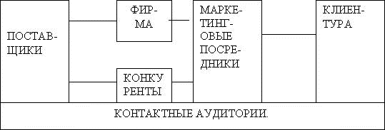 Основная задача системы управления маркетингом - обеспечить производство товаров, привлекательных с точки зрения целевых рынков. Успех зависит также и от действия посредников, конкурентов и различных контактных аудиторий, представленных на рис.4.2.