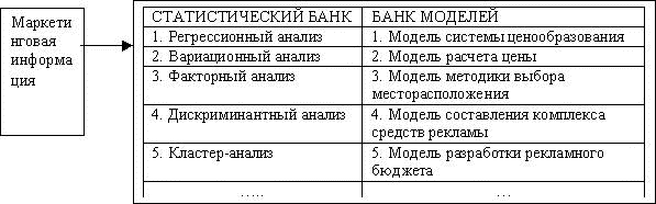 Банк моделей – набор математических моделей, способствующих принятию более оптимальных маркетинговых решений по деятельности рынка.