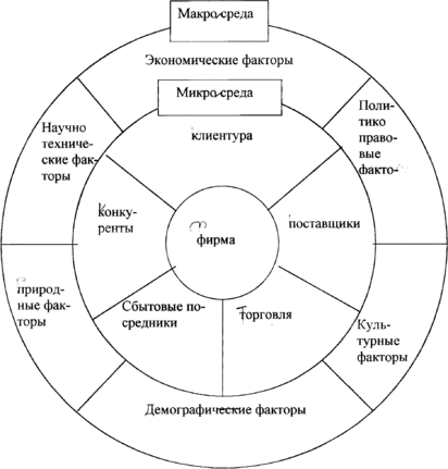 Маркетинговая среда фирмы - это совокупность активных субъектов и сил, действующих за пределами фирмы и влияющих на возможности руководства службой маркетинга устанавливать и поддерживать с целевыми клиентами отношения успешного сотрудничества.