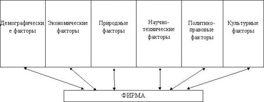 Макросреда представлена силами более широкого социального плана, которые оказывают влияние на микросреду такими, как факторы демографического, экономического, технического, политического, культурного характера.