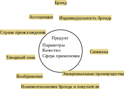 | Совокупность элементов (атрибутов) отличающих наш товар от других товаров. | Способность соответствовать ожиданиям покупателя, эмоциональное желание обладать товаром, отождествление себя и бренда. |