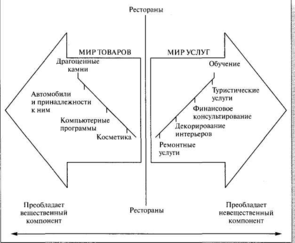 Рис.5.1. Различия между отдельными типами товаров и услуг в зависимости от значимости вещественной составляющей.