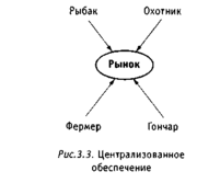 При третьем варианте каждый из работников имеет дело лишь с одним купцом, т.е. одним рынком. Централизованный рынок резко повышает торгово-операционную эффективность экономики.