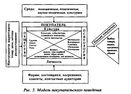 Таким образом, обеспечивается эффективное приспособление производства и сфер обращения (и их структур) к изменениям рынка («Рынок с точки зрения маркетинга - это совокупность существующих и потенциальных покупателей товара» [14, с. 36]). А это, в свою очередь, предполагает необходимость комплексного подхода, а именно изучения всех внешних (макросреды) и внутренних (микросреды) факторов, оказывающих воздействие на хозяйственную деятельность и поведение потребителя.