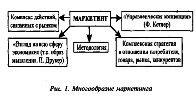 Л. Роджер в работе «Сущность маркетинга» предлагает отличать маркетинг как определенную концепцию от маркетинга как комплекса разнообразных видов деятельности, осуществляемых специалистами, т.е. маркетинг как образ мышления - от маркетинга как образа действия [37, с. 45].
