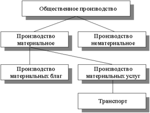 Транспорт - это отрасль материального производства, осуществляющая перевозки людей и грузов. В структуре общественного производства транспорт относится к сфере производства материальных услуг (рис. 3.1).
