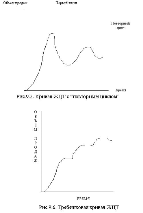 Одним из часто встречающихся вариантов является кривая с повторным циклом (рис.6.5.), вызванным мероприятиями по стимулированию сбыта, модернизации товара и т.п.