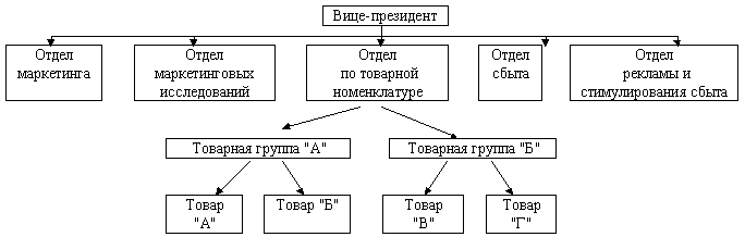 Рис. 2.5 Схема организации службы маркетинга по товарному принципу.