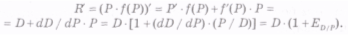 т.е. как функцию от цены. Функция будет возрастающей, убывающей или постоянной - в зависимости от знака ее первой производной. Производная от выручки определяется следующим образом: