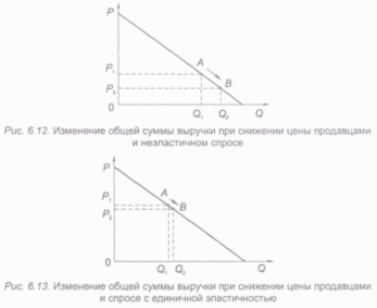 Продавец, стремящийся к максимизации суммы дохода от реализации продукции, должен оценивать эластичность спроса на продаваемый им товар. При эластичном спросе выгоднее снижать цену, тогда рост объема продаж приведет к увеличению выручки. Если спрос неэластичен, продавцу выгоднее увеличивать цену, тогда снижение объема продаж будет менее значительным и сумма выручки возрастет. Конечно, сумма выручки - не единственный показатель, интересующий продавца, в следующей главе будет показано, что еще важнее для него прибыль.