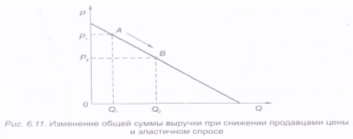 Другими словами, если на данном отрезке спрос эластичен, то рост цены приведет к снижению общей выручки продавцов, а ее снижение будет сопровождаться увеличением выручки (Рис.6.11).