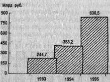Рис. 3. Динамика денежных доходов населения в регионе за 1993-1995 гг.