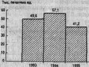 Рис. 2. Динамика выпуска книг и брошюр в одном из регионов России за 1993-1995 гг.