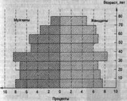 Рис. 6. Распределение населения одного из регионов России по полу и возрасту в 1995 г.