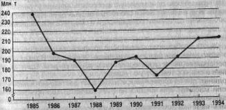 | Млн. т | 237,4 | 179,2 | 189,1 | 158,2 | 186,8 | 192,2 | 172,6 | 191,7 | 210,1 | 211,3 |