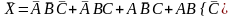 1) составить логические суммы переменных для строк таблицы истинности, в которых функция Х равна 0. Если значение переменной (А, В или С) в строке равно 1, то в сумме записывается отрицание этой переменной;
