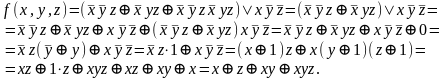 Выразим эту логическую функцию в СДНФ (символ конъюнкции писать не будем):
