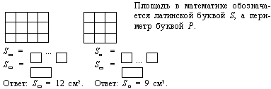 | Сколько квадратных сантиметров разместилось по длине каждой фигуры? По ширине? Сколько всего квадратных сантиметров разместилось на площади каждой фигуры. Сравни результат с длиной и шириной и сделай вывод, как найти площадь этих фигур? Сравни их: