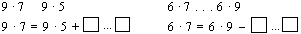 2. Сравни значения произведений в таблицах умножения и определи, на сколько каждое следующее произведение больше предыдущего.