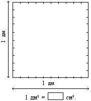 | 17. Как измерить площадь доски? Какую единицу измерения удобно выбрать? 18. Раздели квадрат, сторона которого равна 1 дм на квадратные сантиметры. Сколько квадратных сантиметров поместилось на одном квадратном дециметре? В одном линейном дециметре 10 линейных сантиметров. 1 дм = 10 см В одном квадратном дециметре 100 см2 1 дм2 = 100 см2 |