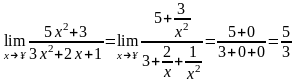 с наибольшим показателем степени числителя и знаменателя). Используя свойства пределов, получим: