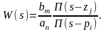 Оператор, связывающий вход и выход, можно задать коэффициентом и множествами нулей (корней полинома) zj; j = 1, …, m и полюсов (корней полинома знаменателя) pi; i = 1, …, n. Передаточная функция будет равна:
