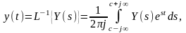 Формула обращения Римана – Меллина устанавливает однозначное соответствие между оригиналом и изображением в точках непрерывности оригинала. Имеются алгоритмы и программы, позволяющие вычислять интеграл (8) при произвольных функциях Y(s). Практическое вычисление оригинала у(t) удобно производить, основываясь на теореме о вычетах, согласно которой значение интеграла (8) может быть представлено суммой вычетов подынтегральной функции,