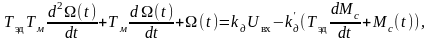 = R/cecм – коэффициент усиления двигателя по нагрузке; Uвх – напряжение якоря электродвигателя; – частота вращения ротора; Мс – момент нагрузки на валу электродвигателя.