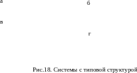 Системы с типовой структурой образуются последовательным (рис.18, a), параллельным (рис.18, б) соединениями звеньев или соединением с обратной связью (рис.18, в). Выявление свойств типовых систем в целом связано с построением эквивалентных систем со свернутой структурой (рис.18, г). Эквивалентные системы в терминах вход-выход могут быть представлены в форме дифференциального уравнения
