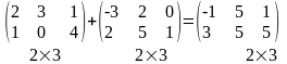 ОПРЕДЕЛЕНИЕ 7. Суммой двух матриц А = (аi j) и В = (bi j) одинакового размера называется матрица С = (сi j) того же размера, элементы которой равны суммам соответствующих элементов слагаемых матриц, т.е. с i j = a i j + b i j