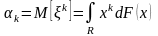 Начальный момент k-того порядка – числовая характеристика случайной величины, являющаяся значением абсолютно сходящегося несобственного интеграла от функции