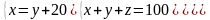 Задача: Даны три числа, сумма которых равна 100. Сумма двух из них равна 80, а первое число на 20 больше второго. Найти эти числа.