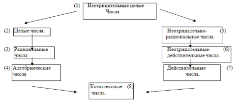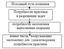 А.А. Столяр предлагает показать учащимся, что расширение понятия числа происходит из потребности практики и в связи с этим предлагает следующую схему:
