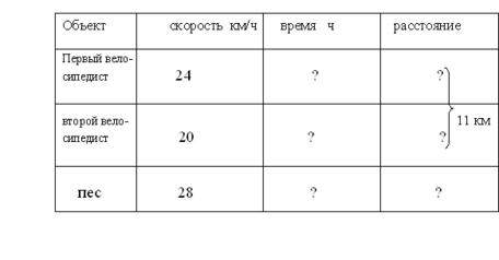 Задача: Два велосипедиста выехали навстречу друг другу из пункта А и В, расстояние между которыми = 11 км, ? = 24 км/ч