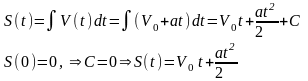V (t) =S¢ (t) =òS¢' (t) dt =òadt =at C, V (0) =V0 ÞC =V0 Þ V (t) =V0 at.