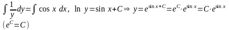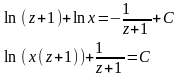 Проинтегрировав обе части последнего равенства получаем общее решение уравнения в виде неявно заданной функции: